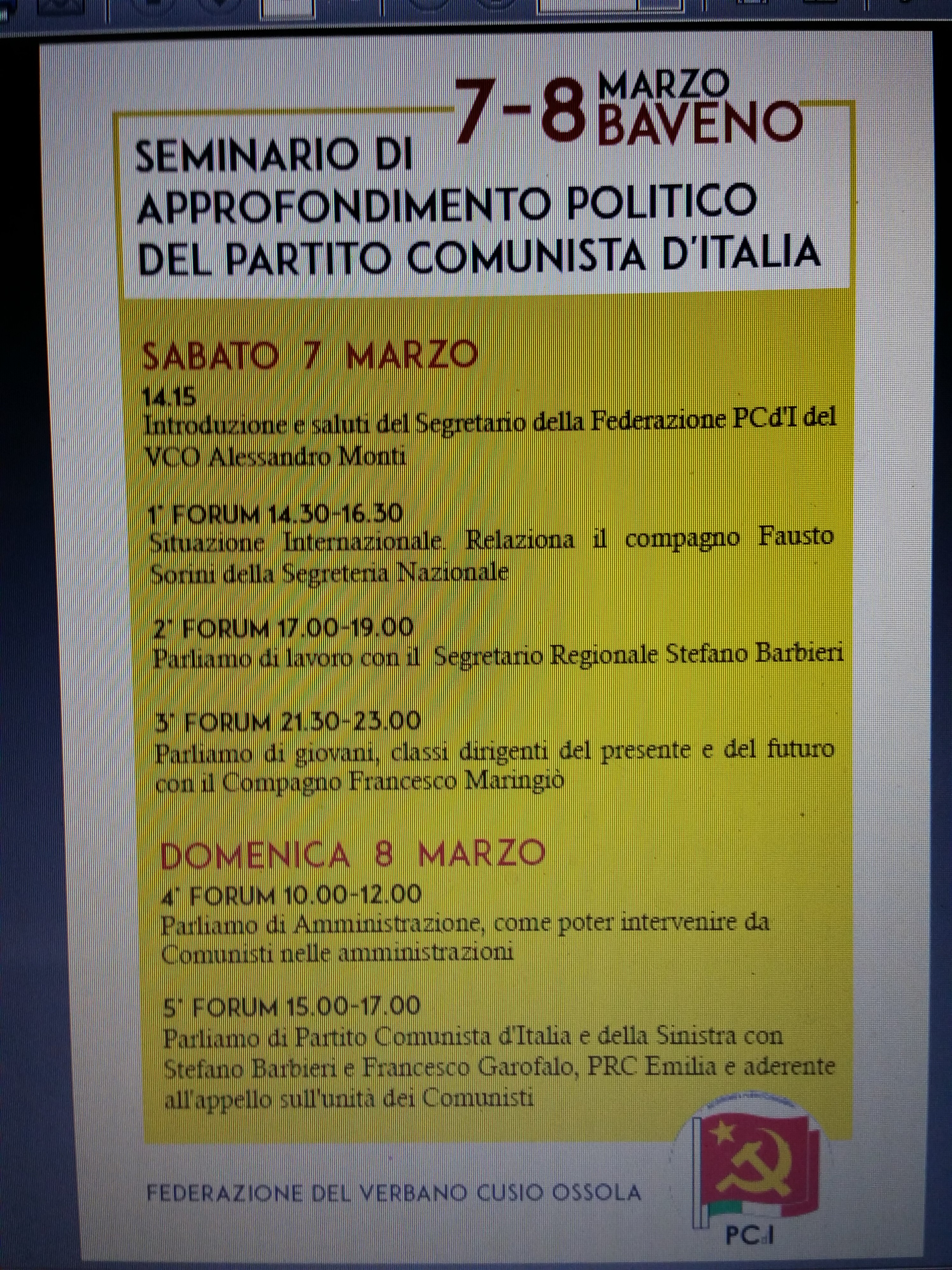Le foto del Seminario regionale del Piemonte del PCdI
