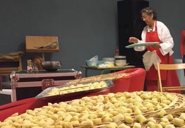 Come una madre. O una sorella. Quando entra in scena l’attrice Mariella Fabbris è un tornado familiare. L’impeto mescolato alla dolcezza. Così rapisce e porta via gli spettatori, facendone scomparire le tracce; per incanto soffitti e pareti svaniscono e siepi e fascine si scavalcano per salire su in montagna dove volano acciughe felici oppure, si plana dentro chiostri odorosi di erbe, finendo tra pennuti angelici. Le storie provengono dalle pagine di Tabucchi e Orengo _ che hanno omaggiato l’artista con due racconti preziosi _ con l’invito a riscoprire le cose buone e semplici. Reimparando magari ciò che è stato dimenticato nel rapporto con la natura. Lettere, poesia, teatro. E cucina. Del cibo spunta in tavolate imbandite, nella stessa scena in cui l’attrice racconta, controllando allo stesso tempo la temperatura dell’acqua: sono happening coinvolgenti, tenuti preferibilmente in luoghi non convenzionalmente teatrali come case e giardini, dove scorre la vita di tutti i giorni. Un pugno di spettatori e un tuffo dentro universi da favola solleticati dai profumi delle pietanze. Gnocchi al Nord, acciughe al Sud. Patate e farina lavorate assieme e condite con quattro sughi diversi nella terra del Prosecco, acciughe declinate in mille modi, a cominciare dalla voluttuosa bagna cauda in cascine piemontesi fino ad incontrare gli aromi forti della Sardegna. E poi i fagioli, bianchi di Spagna o Corona conditi con buon olio d’oliva e… ma questo però è nel prossimo spettacolo dedicato a Steinbeck che deve ancora debuttare.